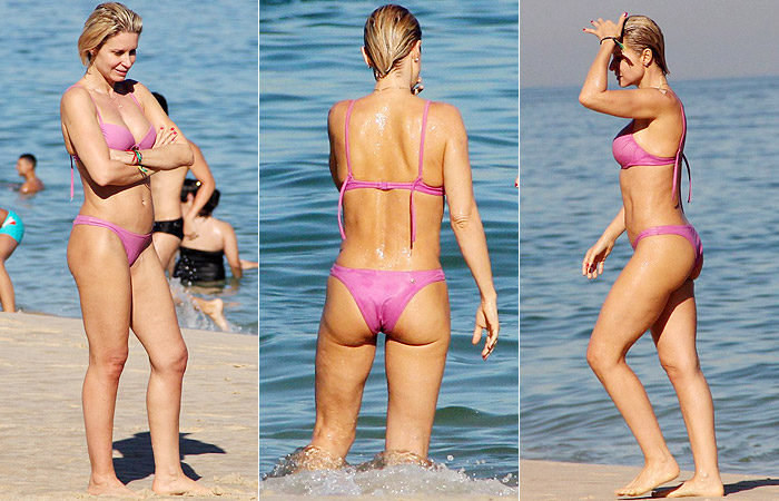 Paula Burlamaqui mostrou estar com o corpão em forma nas areias da praia de Ipanema, Zona Sul do Rio de Janeiro, neste domingo (7). Com biquíni rosa comportado, a atriz, que conversou com vários amigos e se divertiu na água, exibiu barriga torneada.